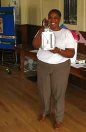Jackie Madison holding her Lantern Light Award.